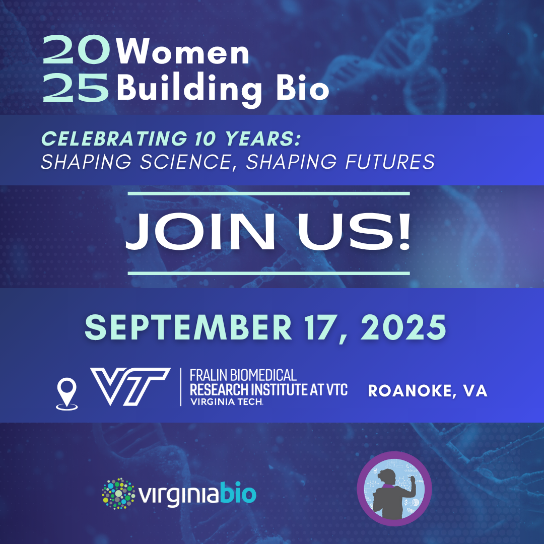 The 10th Annual Women Building Bio 2025 will be held September 17 at Fralin Biomedical Research Institute at VTC in Roanoke, Virginia.